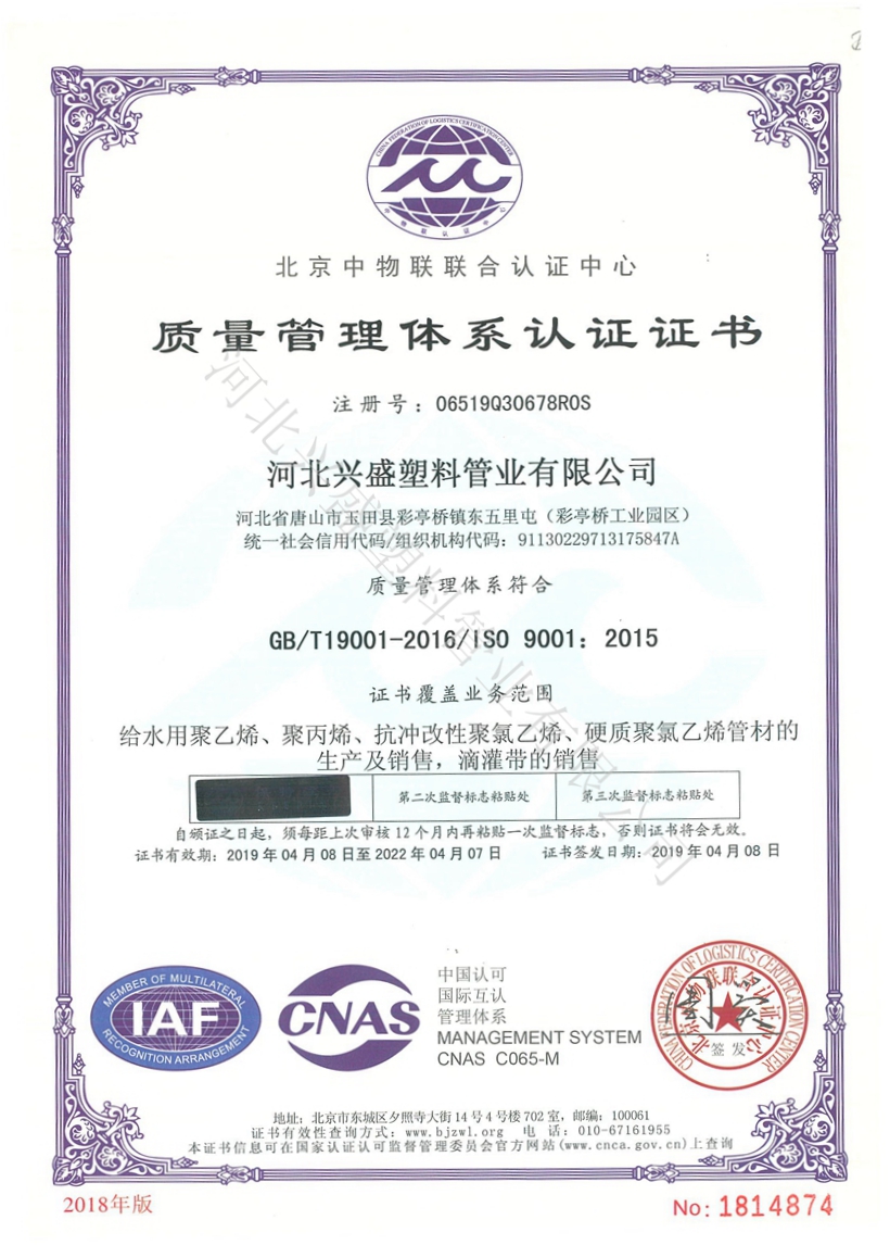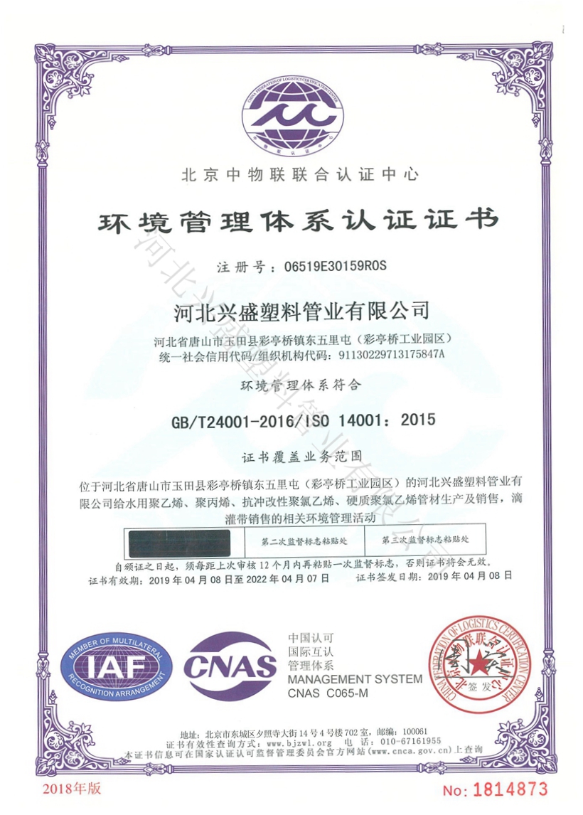 河北興盛塑料管業(yè)有限公司,始建于1981年,至今已有四十多年的發(fā)展歷程,致力于人畜飲水、節(jié)水灌溉等管道系列產(chǎn)品的研發(fā)、生產(chǎn)、銷(xiāo)售、設(shè)計(jì)安裝于一體的綜合型現(xiàn)代化企業(yè).....